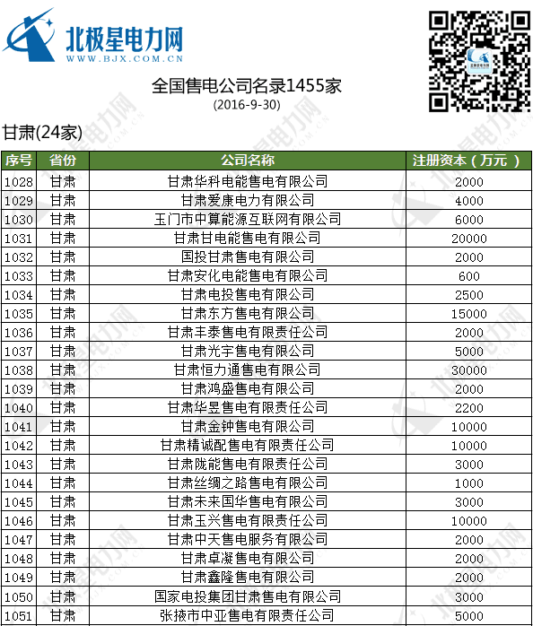 全國售電公司名錄(1455家)