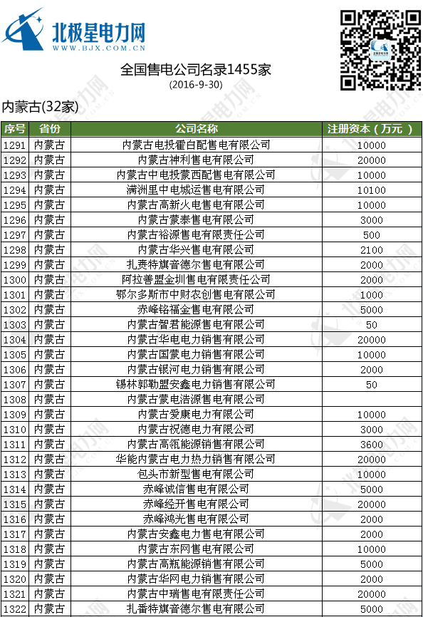 1455家全國(guó)售電公司名單 全國(guó)售電公司名錄