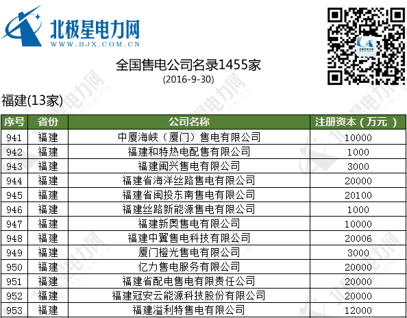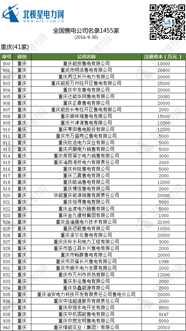 全國售電公司名錄(1455家)