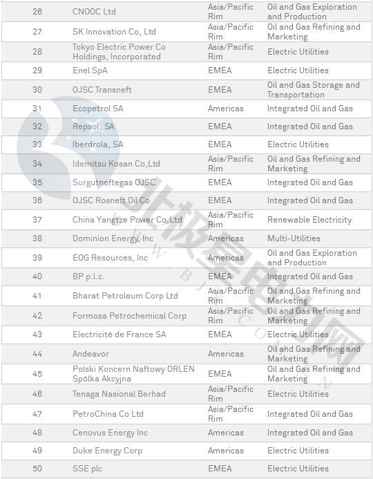 普氏2018年全球能源公司250強(qiáng)榜單出爐(附全名單)