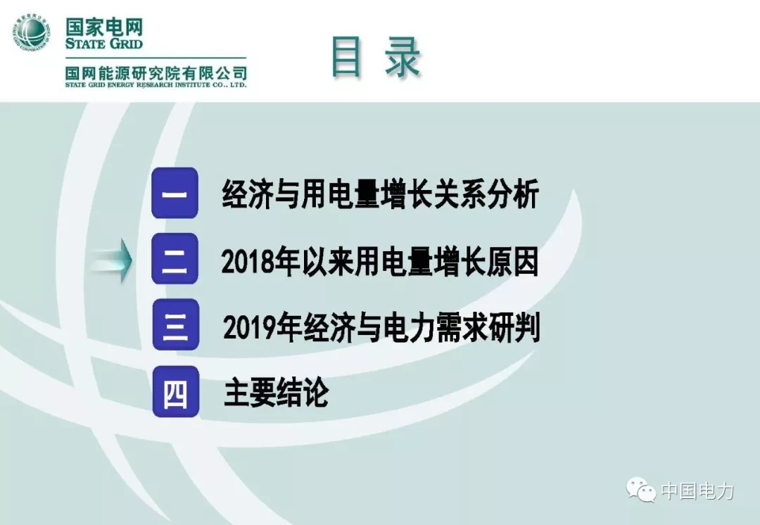 報告主要分4個部分:1.經(jīng)濟(jì)與用電量增長關(guān)系分析;2.2018年以來用電量增長原因;3.2019年經(jīng)濟(jì)與電力需求研判;4.主要結(jié)論。