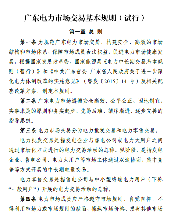 廣東電力市場交易基本規(guī)則(試行)正式稿印發(fā)!