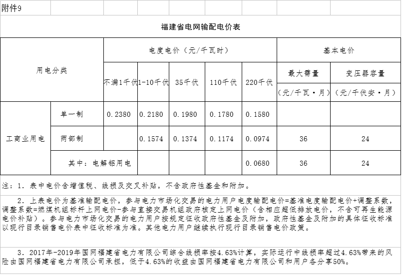 附件:1.福建省電網(wǎng)銷售電價(jià)表 附件點(diǎn)擊下載.rar