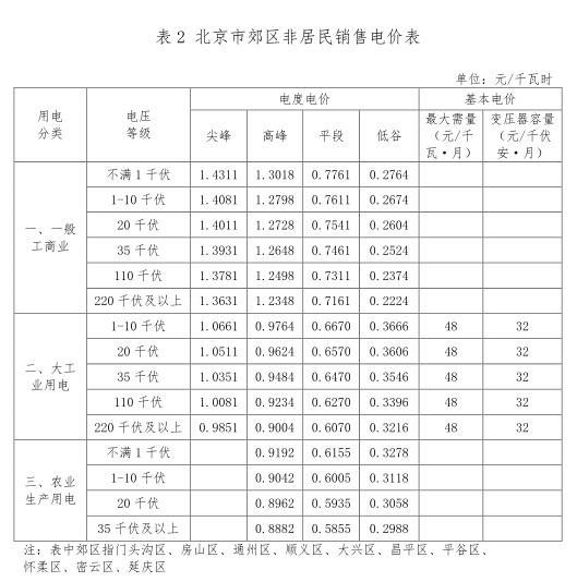 附件:北京市非居民銷售電價表