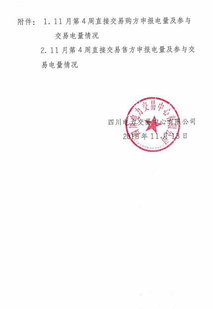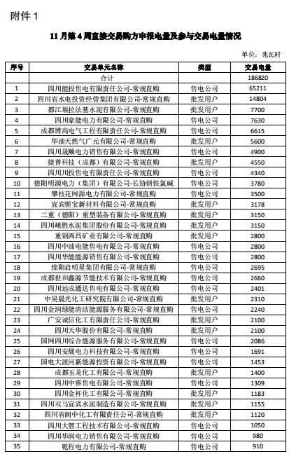 四川2018年11月第4周直接交易:購(gòu)電方60家(售電公司28家)