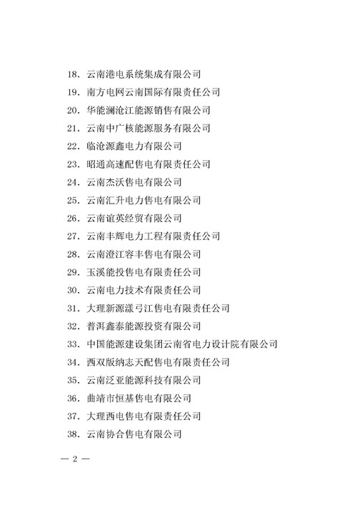 50家!云南公布8月售電企業(yè)目錄