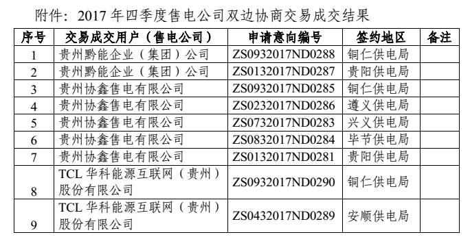 2.54億千瓦時(shí)!2017年貴州第四季度雙邊協(xié)商交易結(jié)果公布