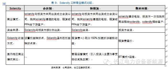 (2)轉(zhuǎn)租賃模式:Solarcity引入轉(zhuǎn)租賃模式是為了配合美國ITC政策,國內(nèi)企業(yè)引入轉(zhuǎn)租賃模式則可以規(guī)避結(jié)算問題,如果與電網(wǎng)等大型企業(yè)開展轉(zhuǎn)租賃業(yè)務(wù)模式,將有望實現(xiàn)雙方共贏。