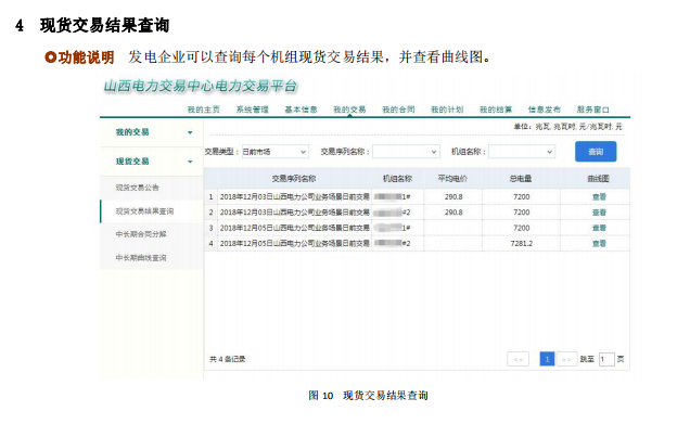 另外印發(fā)了現(xiàn)貨申報(bào)操作手冊(cè):發(fā)電企業(yè)現(xiàn)貨功能包括中長(zhǎng)期合同分解,中長(zhǎng)期曲線(xiàn)查詢(xún)、現(xiàn)貨交易公告、現(xiàn)貨交易結(jié)果查詢(xún)、日前市場(chǎng)預(yù)計(jì)收益;電力用戶(hù)現(xiàn)貨功能包括中長(zhǎng)期合同分解確認(rèn)、現(xiàn)貨交易公告。