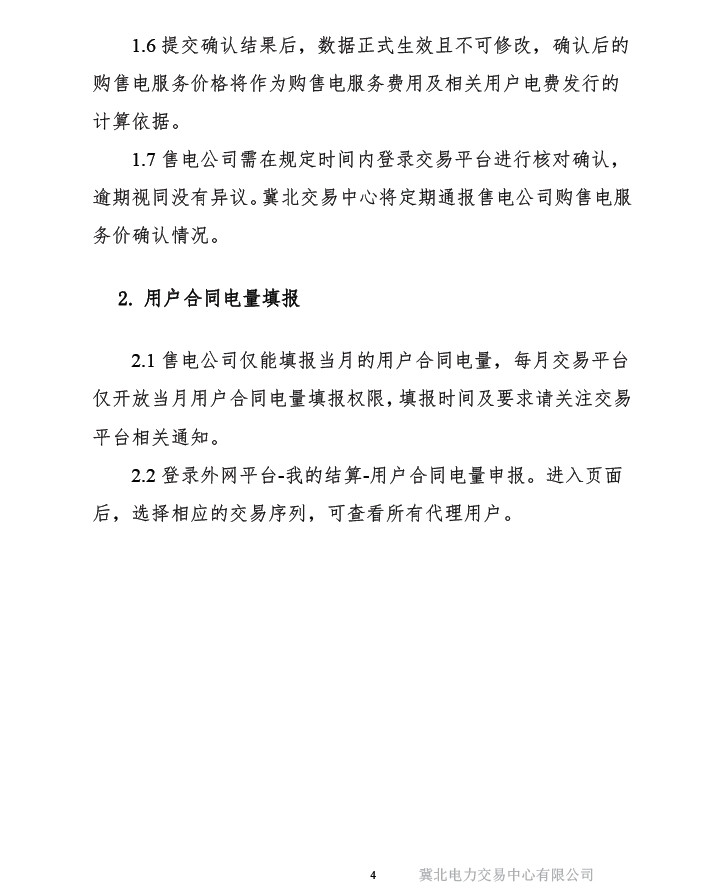 冀北電力交易中心購售電服務(wù)價格確認及用戶合同電量填報交易平臺線上操作指引