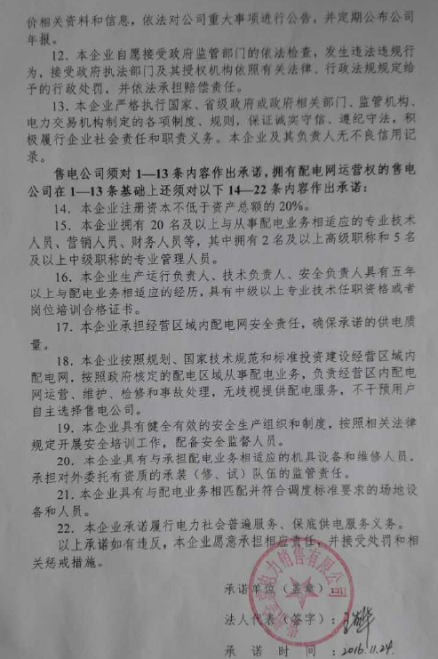 根據國家發(fā)展改革委、國家能源局印發(fā)的《售電公司準入與退出管理辦法》(發(fā)改經體〔2016〕2120號),以及貴州省能源局、發(fā)改委印發(fā)的《關于做好售電公司申報工作的通知》(黔能源電力〔2016〕185號)相關要求,現將滿足售電公司準入條件的貴州金惠電力銷售有限公司相關信息予以公示,公示期為1個月。公示期滿無異議的售電公司,將納入貴州省自主交易市場主體目錄,按照交易規(guī)則要求參與電力市場化交易。如有異議,可向貴州電力交易中心反映。