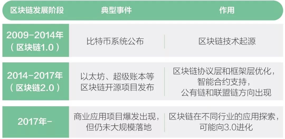 區(qū)塊鏈作為獨立技術(shù)出現(xiàn)可追溯到2008年比特幣的誕生,現(xiàn)在已發(fā)展到第三個階段(參見下表)。
