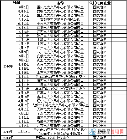 近日,重慶電力交易中心掛牌成立,成立重慶電力交易中心,是重慶市貫徹落實黨中央、國務院深化電力體制改革決策部署、加快構建有效競爭的市場結構和市場體系的重大舉措。那么,除重慶外,全國的電力交易中心成立