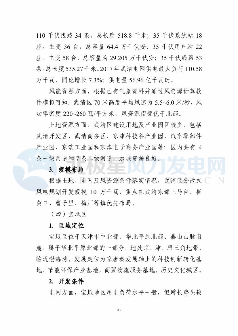 3、武清區(qū)分散式 風(fēng)電規(guī)劃開發(fā)規(guī)模 10 萬(wàn)千瓦,重點(diǎn)在武清東部上馬臺(tái)、崔 黃口、曹子里、梅廠等鎮(zhèn)優(yōu)先布局。