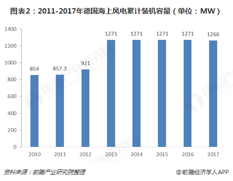 德國受海洋法的限制,海岸線15海里之內不允許開發(fā)海上風電場,導致造價預算遠遠高于丹麥和荷蘭的海上風電場。雖然德國海上風電起步也比較晚,但政策的支持,發(fā)展狀態(tài)相對領先。截止2017年底,德國累計海上風機裝機容量5355MW,位居歐盟第一,世界第二位。