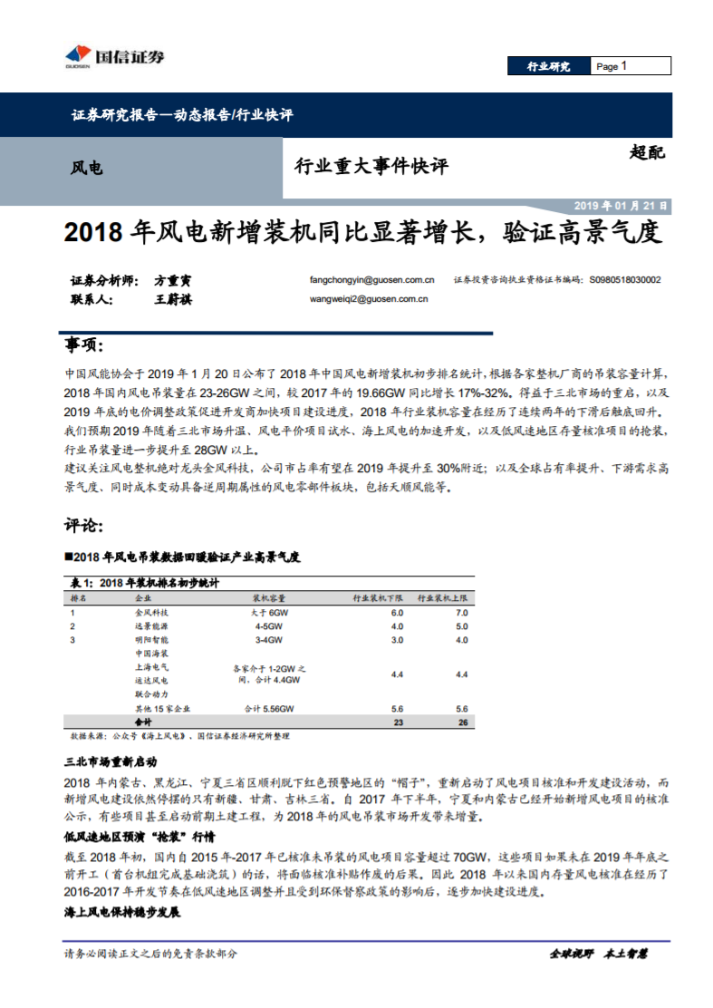 2018年風(fēng)電吊裝數(shù)據(jù)回暖驗(yàn)證產(chǎn)業(yè)高景氣度