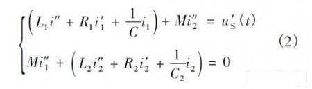 對于式(1),通過不同的處理將得到不同的數(shù)學(xué)模型。對圖1 所示的雙RLC 耦合回路進行去耦處理,得到2 個獨立的RLC 串聯(lián)回路。對式(1)求導(dǎo),則可得到二元二階方程組: