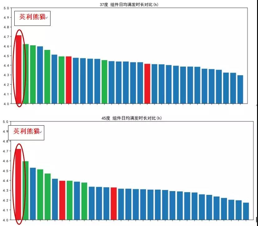 圖五 5°、37°、45°傾角下各組件日均滿(mǎn)發(fā)時(shí)長(zhǎng)(來(lái)源:中國(guó)電科院)