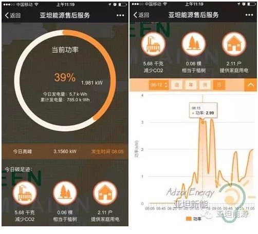 亞坦能源具有自主研發(fā)的微信監(jiān)控系統(tǒng),比第三方系統(tǒng)更懂得客戶的需求,更及時(shí)響應(yīng)可能出現(xiàn)的問題和客戶的疑問。