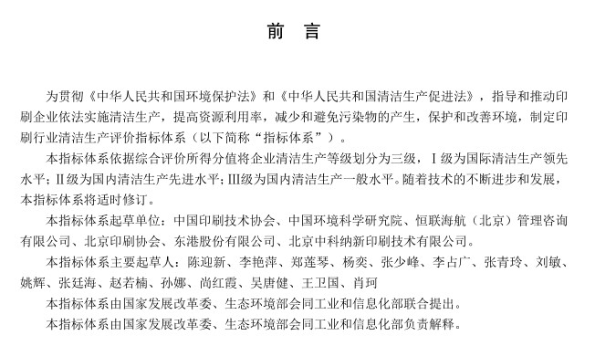 國(guó)家發(fā)改委:印刷業(yè)清潔生產(chǎn)評(píng)價(jià)體系