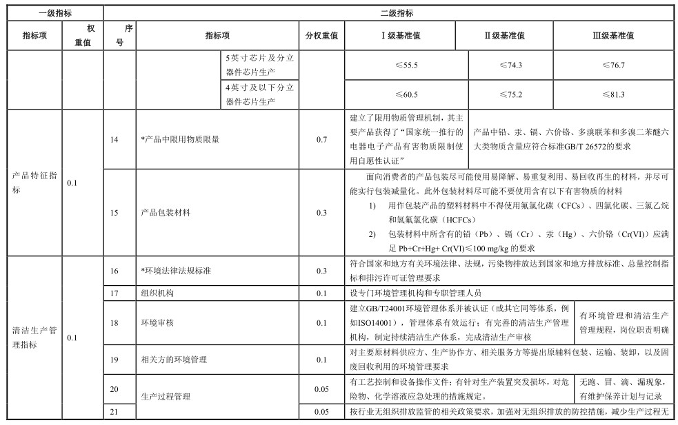 國(guó)家發(fā)改委:電子器件(半導(dǎo)體芯片)制造業(yè)清潔生產(chǎn)評(píng)價(jià)指標(biāo)體系