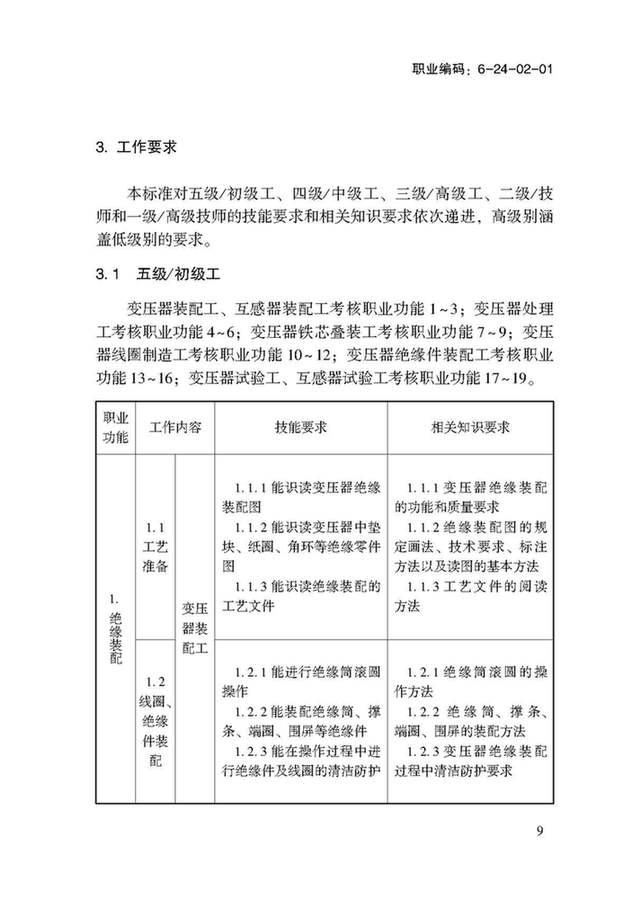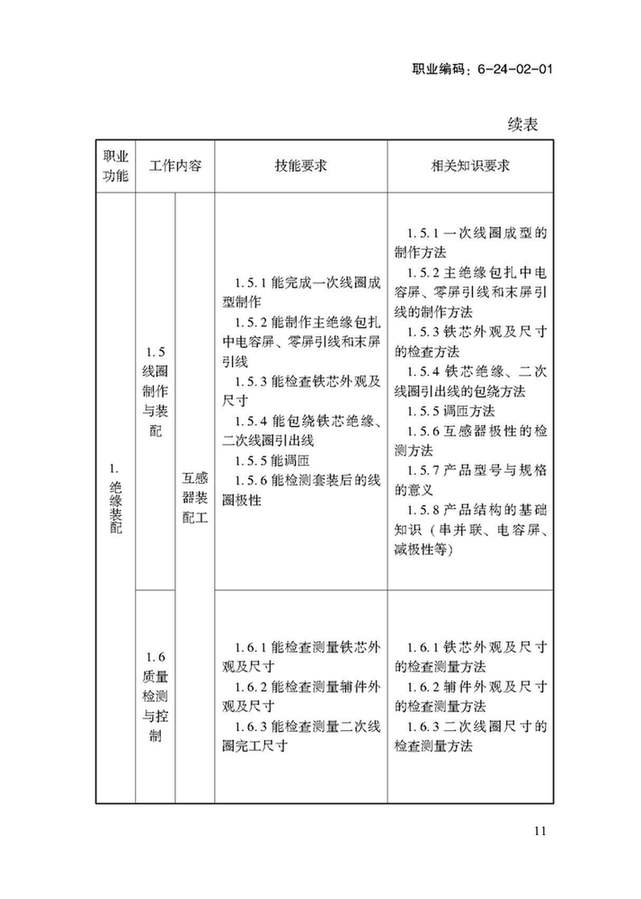 以下部分為:國家職業(yè)技能標準——變壓器互感器制造工