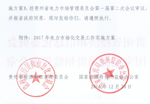 貴州2017電力市場化交易工作實(shí)施方案