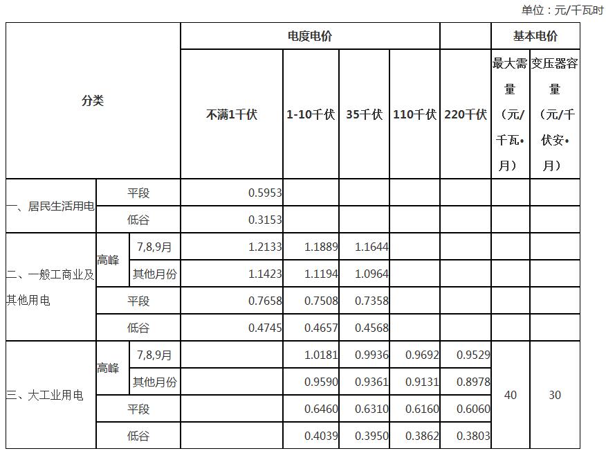 一、從2018年1月1日起,下調(diào)高峰(含7-9月份)時(shí)段電價(jià)上浮幅度2個(gè)百分點(diǎn)。將高峰時(shí)段電價(jià)上浮幅度由55%下調(diào)為53%,其中7-9月份上浮幅度由65%下調(diào)為63%。低谷時(shí)段電價(jià)下浮幅度41%保持不變。