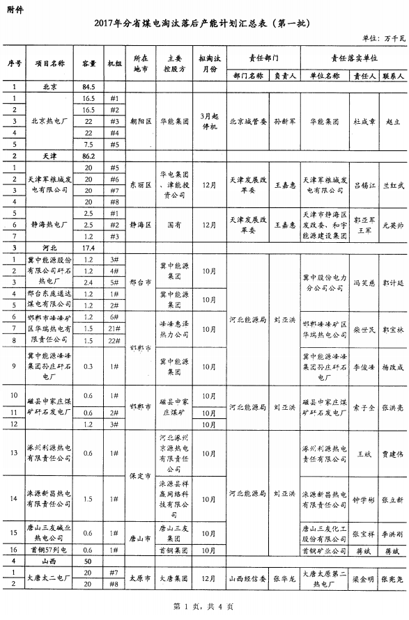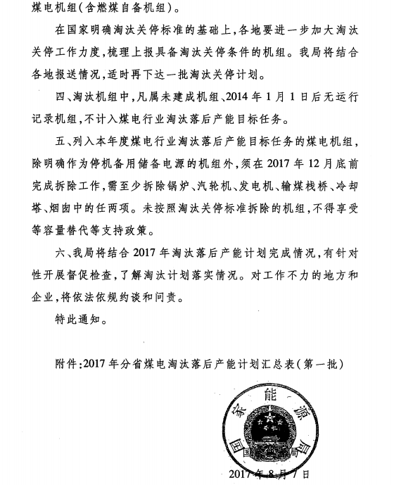 近日廣東省發(fā)展改革委發(fā)布了轉(zhuǎn)發(fā)國家能源局關(guān)于下達2017年煤電行業(yè)淘汰落后產(chǎn)能目標任務(wù)(第一批)的通知。文件指出,按照國家有關(guān)要求,廣東省發(fā)改委牽頭制定了十三五期淘汰關(guān)停梅州粵嘉電力有限公司5-6號機、中山