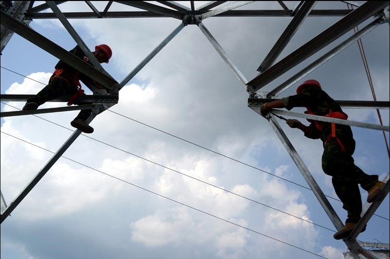 8月13日,在秦嶺腹地的陜西省商洛市丹鳳縣鳳冠山,寧西鐵路復(fù)線110千伏丹鳳牽供電工程45號(hào)鐵塔正在進(jìn)行組裝施工。承擔(dān)施工任務(wù)的國(guó)網(wǎng)商洛供電公司克服高溫酷暑,加快工程建設(shè),全力為寧西鐵路復(fù)線建設(shè)提供可靠