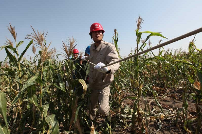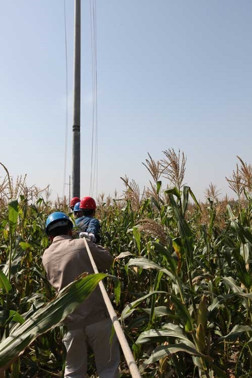 10月10日,工人們正在野外架設(shè)電力線路。金九月,銀十月,當(dāng)前,正是電網(wǎng)改造施工的黃金季節(jié),安徽電力亳州渦陽供電公司抓住當(dāng)前天氣晴好,有利電網(wǎng)工程建設(shè)的良好時機(jī),及時組織工程技術(shù)人員對城鄉(xiāng)薄弱電網(wǎng)進(jìn)