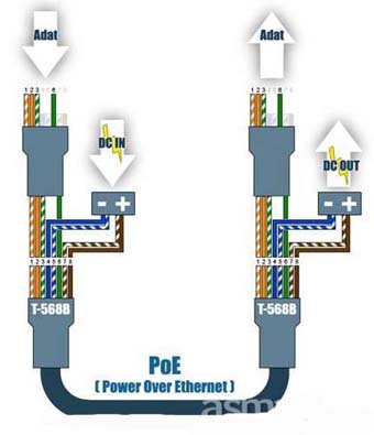 標(biāo)準(zhǔn)的Cat.5第五類網(wǎng)路線有四對雙絞線,但是在l0M BASE-T和100M BASE-T中只用到其中的兩對。IEEE80 2.3af允許兩種用法,應(yīng)用空間腳供電時,4、5腳連接為正極,7、8腳連接為負(fù)極。應(yīng)用數(shù)據(jù)腳供電時,將DC電源加在傳輸變壓器的中點,不影響數(shù)據(jù)的傳輸。在這種方式下線對1、2和線對3、6可以為任意極性。