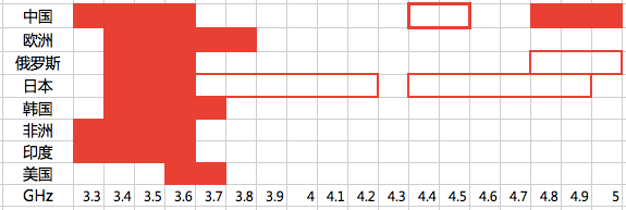 上圖是全球各國在C波段的可用頻段,可用頻段范圍參差不齊,而n77的頻段范圍剛好將其全部覆蓋,通吃!