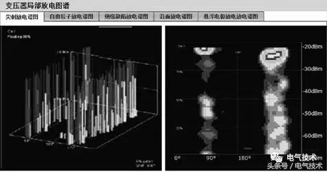 當局部放電監(jiān)測系統(tǒng)監(jiān)測到有局放信號時,通過軟件查看當前局部放電譜圖如圖2所示,可查詢放電信號的二維圖譜和三維圖譜,二維圖譜可直接顯示放電量大小,三維圖譜可判斷放電類型。根據監(jiān)測到的放電位置,可以有效發(fā)現變壓器運行中的絕緣狀況,發(fā)現絕緣制造工藝的缺陷、安裝過程中的差錯,及時處理故障隱患,確保設備安全運行。