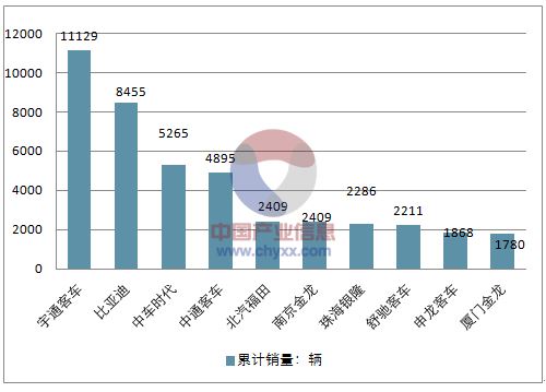 2017 年1-10 月純電動(dòng)客車(chē)銷(xiāo)量前10 的企業(yè)