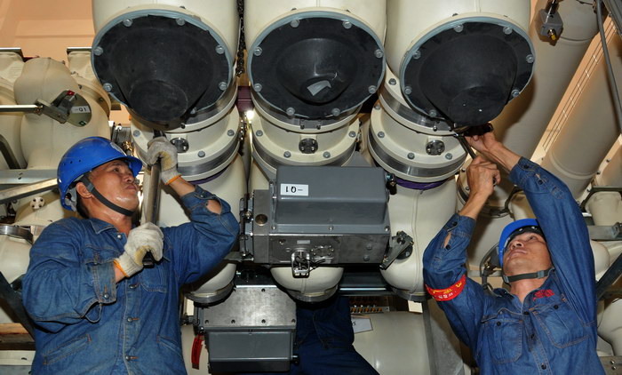 工人們正在緊張地進(jìn)行電力設(shè)備的安裝工作。