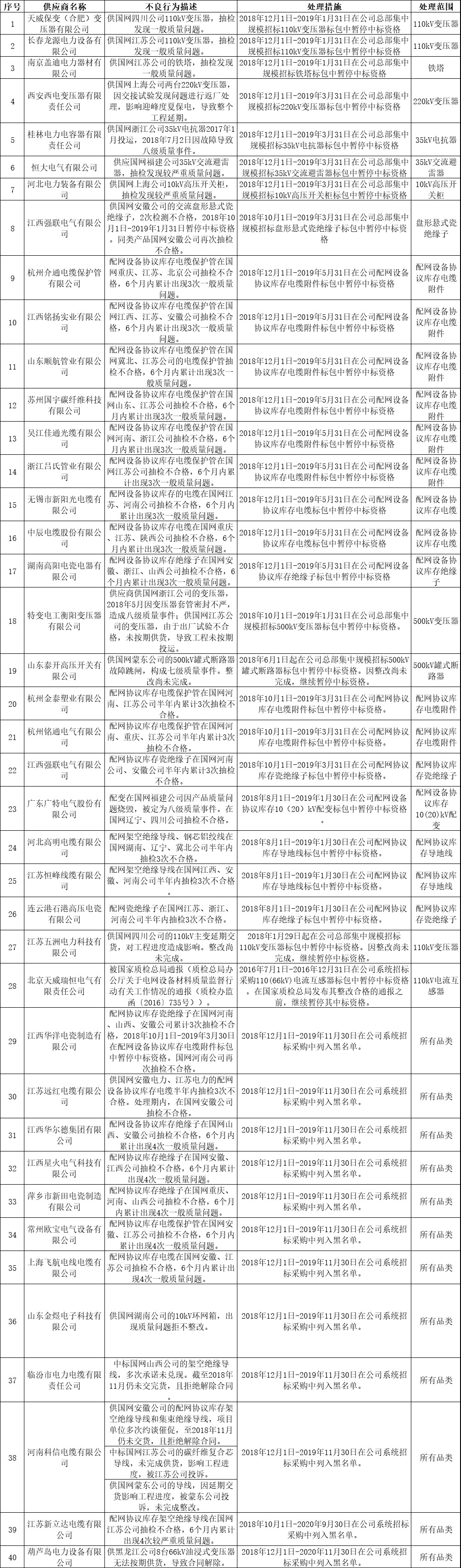 為促進(jìn)供應(yīng)商誠信履約,保證產(chǎn)品質(zhì)量,確保電網(wǎng)建設(shè)順利進(jìn)行及安全可靠供電,國家電網(wǎng)依據(jù)《國家電網(wǎng)公司供應(yīng)商不良行為處理管理細(xì)則》的有關(guān)規(guī)定,對(duì)出現(xiàn)產(chǎn)品質(zhì)量問題、履約不誠信等問題的供應(yīng)商進(jìn)行了處理。