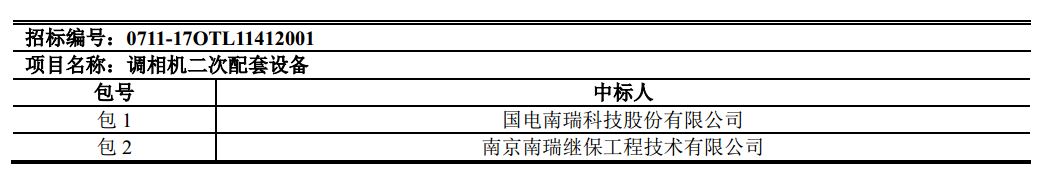 國(guó)家電網(wǎng)公司2017年酒泉、湘潭、錫盟、泰州、古泉等8個(gè)特高壓換流站加裝調(diào)相機(jī)工程AVC子站中標(biāo)名單招標(biāo)編號(hào):0711-17OTL11412001