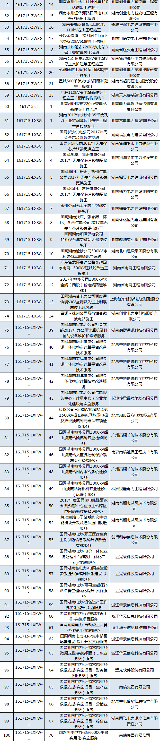 國網(wǎng)(湖南)2017年第五次工程及服務(wù)項目招標采購中標結(jié)果
